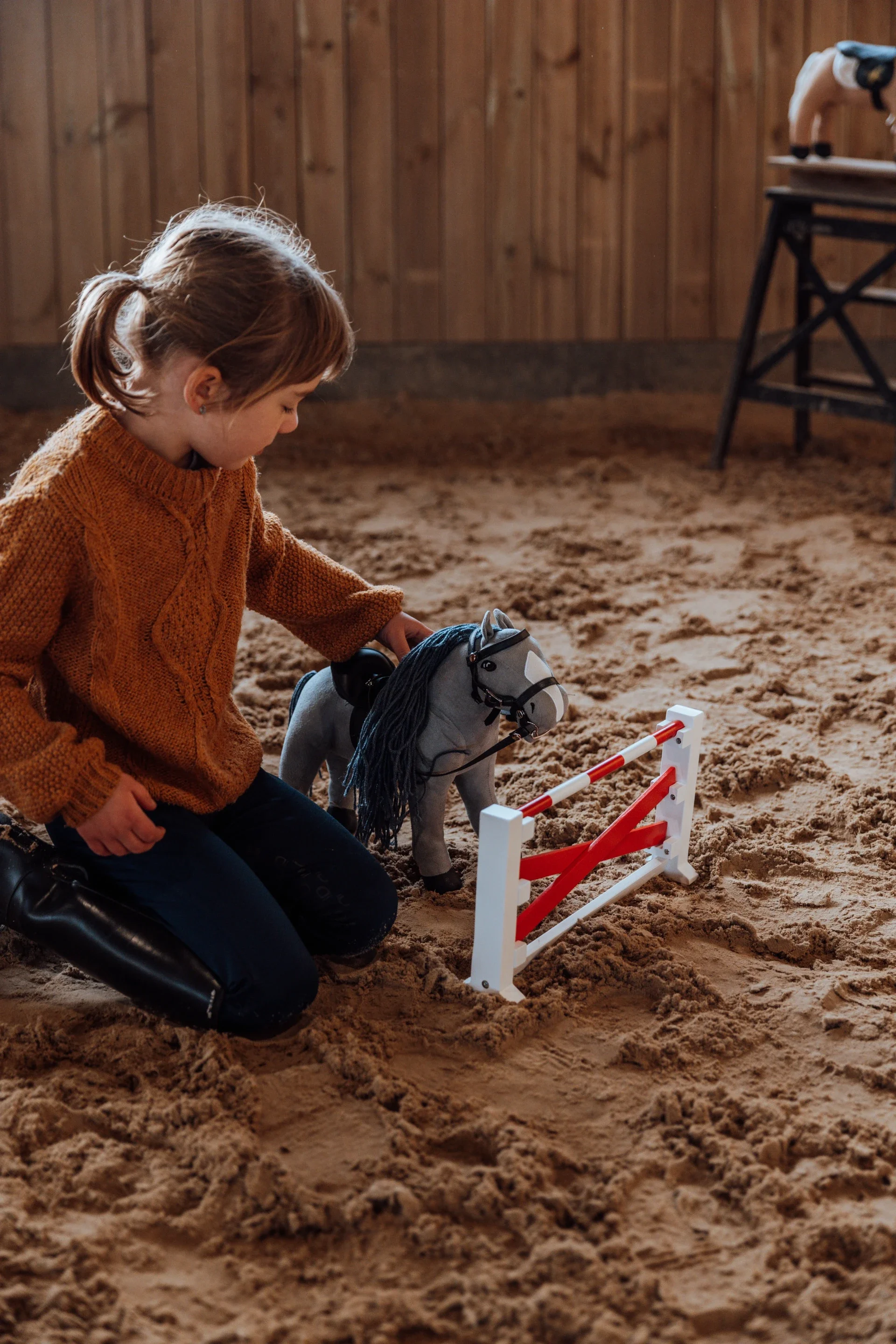 Erweitern Sie die Spielwelt Ihres kleinen Reiters mit dem Cuddle Pony Show Jump in Rot-Weiß von byASTRUP®! Dieses liebevoll gestaltete Hindernis ist perfekt für Cuddle Ponys und Tiny Horses und sorgt für stundenlangen Spielspaß. Ob beim Üben von Parcours-Sprüngen oder beim kreativen Aufbau eines spannenden Springparcours – hier sind Fantasie und Bewegung garantiert.